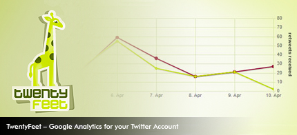 TwentyFeet basically does what It says. It gives you a slick number of graphs documenting growth and impact of your Twitter account. This can somehow be seen to be quite similar to Google Analytics for a website. It is very useful if you really try to monitor your Twitter Account.